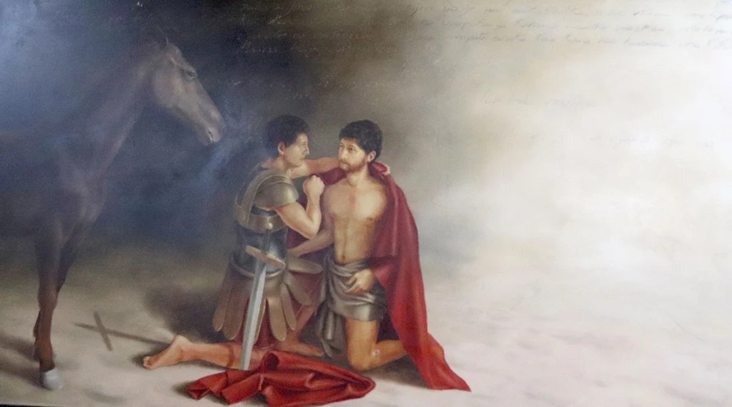 When David had finished speaking to Saul, the soul of Jonathan was bound to the soul of David, and Jonathan loved him as his own soul. Jonathan stripped himself of the robe he was wearing, and gave it to David, and his armor, and even his sword and his bow and his belt.